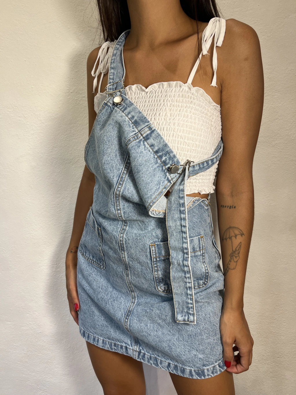 - Jardinero confeccionado en jean, viene en celeste y en blanco, es super cómodo y fresco.