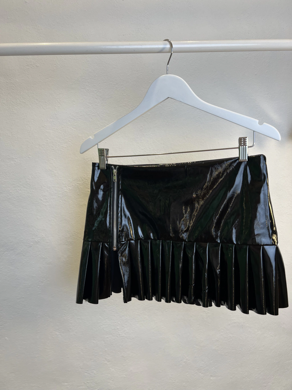 Pollera de charol tiro medio-bajo, con tablitas y cierre en el costado